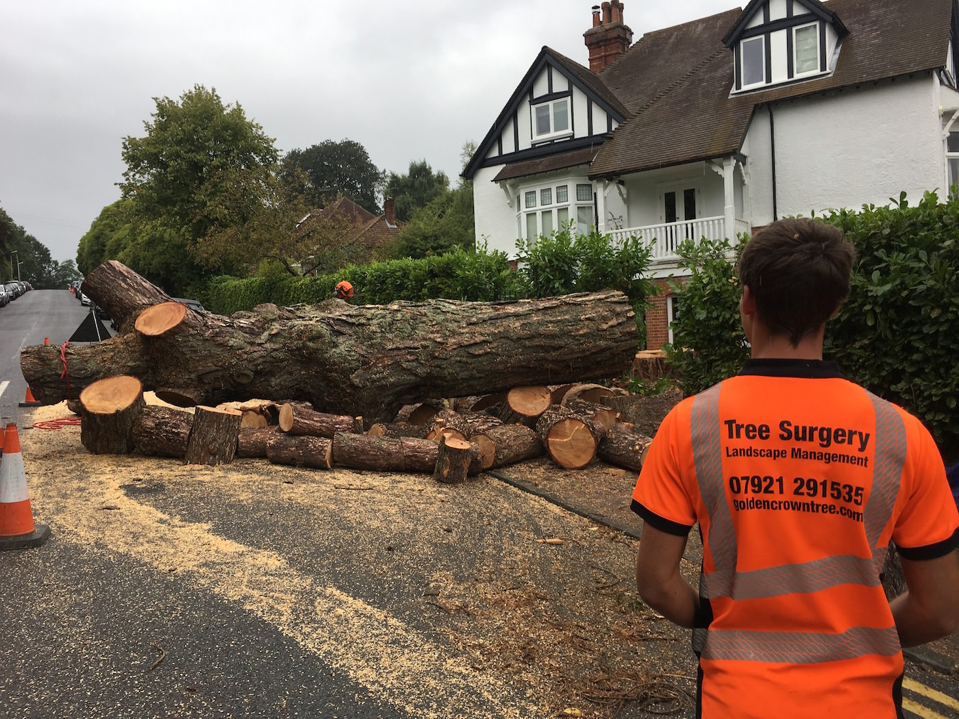 "Our two lovely oaks were blocking too much light and encroaching on our house, so we asked for them to be cut back. We are so happy with the result and the quality workmanship we couldn't recommend Golden Crown enough, fantastic tree surgeons!"